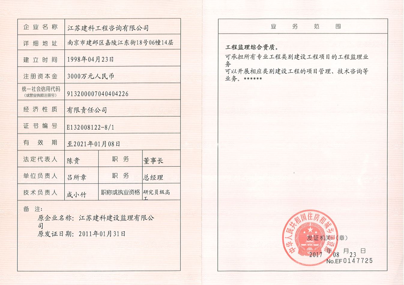 江苏建科建设监理有限公司是前身组于1988年的江苏省建筑科学研究院建设监理试点组(后又改称建设监理部)